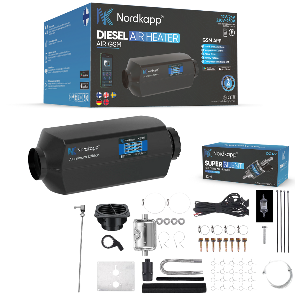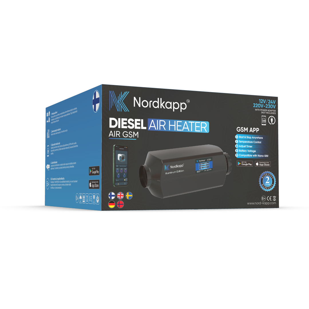 Värm upp dina fordon och fartyg med Nordkapps avancerade GSM-dieselluftvärmare! Perfekt anpassad för bilar och båtar, denna innovativa förvärmare ser till att du möts av optimala temperaturer, även i de kallaste förhållandena. Oavsett om du är på väg eller ger dig ut till sjöss, har Nordkapp™-värmaren dig täckt.